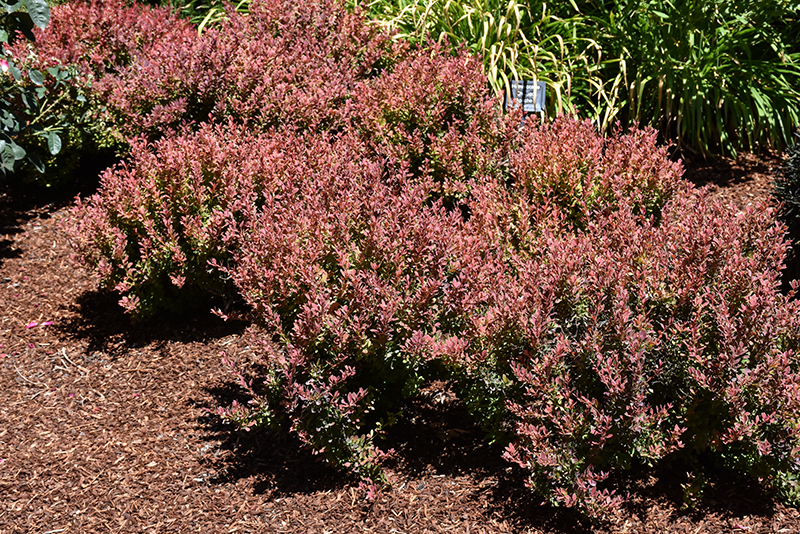 Barberry (Japanese), Golden Ruby will grow to be about 24 inches tall at maturity, with a spread of 24 inches. It tends to fill out right to the ground and therefore doesn't necessarily require facer plants in front. It grows at a fast rate, and under ideal conditions can be expected to live for approximately 20 years.