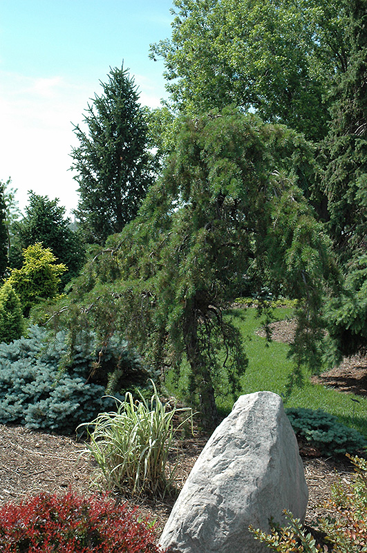 Hardiness Zone: 1b Description: A spreading and trailing shrub, very unlike the species, tends to crawl along the ground and over rocks or walls, also grown as a weeping accent tree if grafted on a standard; durable and hardy, interesting for detail use in the garden Ornamental Features Pine, Uncle Fogy Jack is a dwarf conifer which is primarily valued in the landscape or garden for its highly ornamental weeping form. It has rich green evergreen foliage. The needles remain green throughout the winter. Landscape Attributes Pine, Uncle Fogy Jack is a multi-stemmed evergreen shrub with a rounded form and gracefully weeping branches. It lends an extremely fine and delicate texture to the landscape composition which can make it a great accent feature on this basis alone. This is a relatively low maintenance shrub. When pruning is necessary, it is recommended to only trim back the new growth of the current season, other than to remove any dieback. It has no significant negative characteristics. Pine, Uncle Fogy Jack is recommended for the following landscape applications; Planting & Growing Pine, Uncle Fogy Jack will grow to be about 4 feet tall at maturity, with a spread of 15 feet. It has a low canopy. It grows at a slow rate, and under ideal conditions can be expected to live for 80 years or more. This shrub does best in full sun to partial shade. It does best in average conditions that are neither too wet nor too dry, and is very intolerant of standing water. This plant should be periodically fertilized throughout the active growing season with a specially-formulated acidic fertilizer. It is not particular as to soil type or pH. It is quite intolerant of urban pollution, therefore inner city or urban streetside plantings are best avoided. This is a selection of a native North American species.![]()
