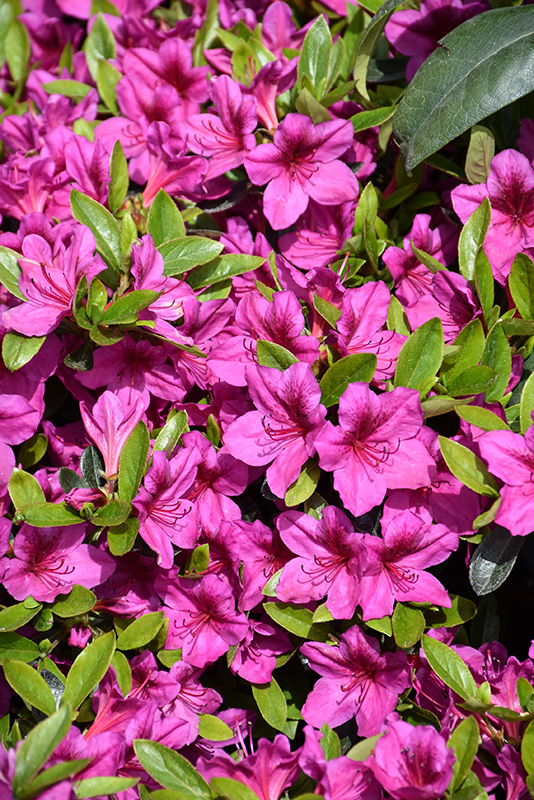 Hardiness Zone: 5a Description: Vivid purple blooms with scarlet spots cover this compact, vigorous azalea in mid-spring; dark green glossy foliage emerges light green-yellow; needs highly acidic and organic soil that is well drained Ornamental Features Azalea, Girard's Purple is covered in stunning clusters of purple trumpet-shaped flowers with scarlet spots at the ends of the branches in mid spring. It has dark green evergreen foliage which emerges light green in spring. The glossy narrow leaves remain dark green throughout the winter. Landscape Attributes Azalea, Girard's Purple is an open multi-stemmed evergreen shrub with an upright spreading habit of growth. Its relatively coarse texture can be used to stand it apart from other landscape plants with finer foliage. This is a relatively low maintenance shrub, and should only be pruned after flowering to avoid removing any of the current season's flowers. It has no significant negative characteristics. Azalea, Girard's Purple is recommended for the following landscape applications; Planting & Growing Azalea, Girard's Purple will grow to be about 3 feet tall at maturity, with a spread of 3 feet. It tends to be a little leggy, with a typical clearance of 1 foot from the ground. It grows at a slow rate, and under ideal conditions can be expected to live for 40 years or more. This shrub does best in partial shade to shade. It does best in average to evenly moist conditions, but will not tolerate standing water. This plant should be periodically fertilized throughout the active growing season with a specially-formulated acidic fertilizer. It is very fussy about its soil conditions and must have rich, acidic soils to ensure success, and is subject to chlorosis (yellowing) of the foliage in alkaline soils. It is somewhat tolerant of urban pollution, and will benefit from being planted in a relatively sheltered location. Consider applying a thick mulch around the root zone in winter to protect it in exposed locations or colder microclimates. This particular variety is an interspecific hybrid.![]()