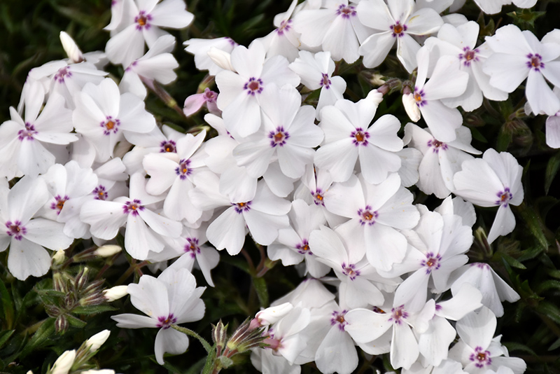 Hardiness Zone: 2a Other Names: Creeping Phlox Description: This variety produces a showy display of bright white flowers with golden centers surrounded by maroon-pink spots; prune lightly after flowering to encourage a dense growth habit; wonderful for rock gardens, edging, or in mixed containers Ornamental Features Phlox, (Creeping) Amazing Grace is smothered in stunning white star-shaped flowers with gold eyes and a hot pink ring at the ends of the stems from mid to late spring. Its tiny needle-like leaves remain forest green in color throughout the year. Landscape Attributes Phlox, (Creeping) Amazing Grace is a dense herbaceous evergreen perennial with a ground-hugging habit of growth. It brings an extremely fine and delicate texture to the garden composition and should be used to full effect. This plant will require occasional maintenance and upkeep, and should only be pruned after flowering to avoid removing any of the current season's flowers. Deer don't particularly care for this plant and will usually leave it alone in favor of tastier treats. Gardeners should be aware of the following characteristic(s) that may warrant special consideration; Phlox, (Creeping) Amazing Grace is recommended for the following landscape applications; Planting & Growing Phlox, (Creeping) Amazing Grace will grow to be only 4 inches tall at maturity extending to 6 inches tall with the flowers, with a spread of 18 inches. When grown in masses or used as a bedding plant, individual plants should be spaced approximately 15 inches apart. Its foliage tends to remain low and dense right to the ground. It grows at a medium rate, and under ideal conditions can be expected to live for approximately 10 years. As an evegreen perennial, this plant will typically keep its form and foliage year-round. This plant does best in full sun to partial shade. It prefers dry to average moisture levels with very well-drained soil, and will often die in standing water. To help this plant achive its best flowering performance, periodically apply a flower-boosting fertilizer from early spring through into the active growing season. It is not particular as to soil type, but has a definite preference for alkaline soils. It is highly tolerant of urban pollution and will even thrive in inner city environments. Consider covering it with a thick layer of mulch in winter to protect it in exposed locations or colder microclimates. This is a selection of a native North American species. It can be propagated by division; however, as a cultivated variety, be aware that it may be subject to certain restrictions or prohibitions on propagation.![]()