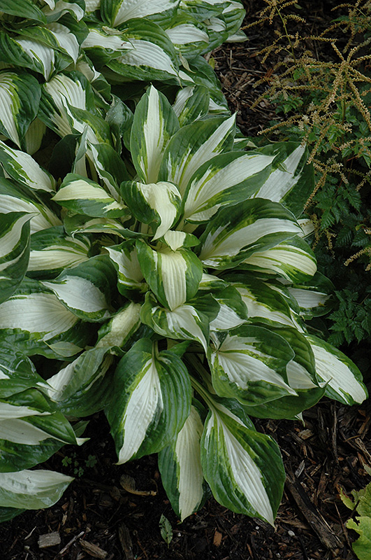 Hardiness Zone: 3a Other Names: Plantain Lily, Funkia Description: This stand-out variety produces dazzling white leaves with blue-green edges and chartreuse-gold variegation; white scapes with lavender flowers in mid to late summer; provides beautiful texture and color to the garden Ornamental Features Hosta, Vulcan features dainty spikes of lavender tubular flowers rising above the foliage from mid to late summer. Its attractive textured pointy leaves remain white in color with distinctive bluish-green edges and tinges of chartreuse throughout the season. Landscape Attributes Hosta, Vulcan is a dense herbaceous perennial with tall flower stalks held atop a low mound of foliage. Its relatively fine texture sets it apart from other garden plants with less refined foliage. This is a relatively low maintenance plant, and is best cleaned up in early spring before it resumes active growth for the season. It has no significant negative characteristics. Hosta, Vulcan is recommended for the following landscape applications; Planting & Growing Hosta, Vulcan will grow to be about 18 inches tall at maturity extending to 24 inches tall with the flowers, with a spread of 3 feet. When grown in masses or used as a bedding plant, individual plants should be spaced approximately 30 inches apart. Its foliage tends to remain dense right to the ground, not requiring facer plants in front. It grows at a medium rate, and under ideal conditions can be expected to live for approximately 10 years. As an herbaceous perennial, this plant will usually die back to the crown each winter, and will regrow from the base each spring. Be careful not to disturb the crown in late winter when it may not be readily seen! This plant does best in partial shade to shade. It prefers to grow in average to moist conditions, and shouldn't be allowed to dry out. To help this plant achive its best flowering performance, periodically apply a flower-boosting fertilizer from early spring through into the active growing season. It is not particular as to soil type or pH. It is somewhat tolerant of urban pollution. This particular variety is an interspecific hybrid. It can be propagated by division; however, as a cultivated variety, be aware that it may be subject to certain restrictions or prohibitions on propagation.