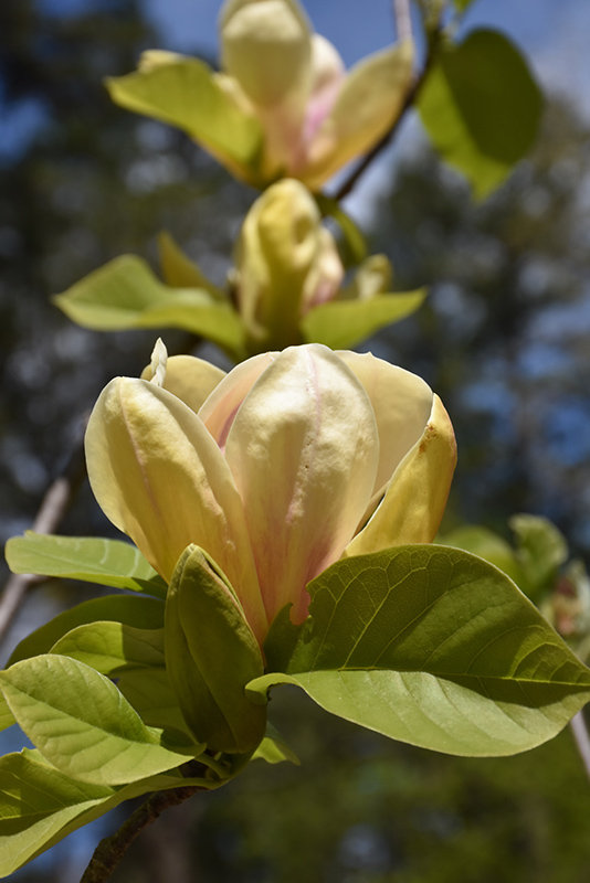 Hardiness Zone: 4b Description: An exquisitely beautiful magnolia with yellow blooms that are striped with pink; a small tree or large shrub with a tidy form and large relatively coarse leaves; flowers appear late, just as foliage emerges. Needs protection from strong winds. Ornamental Features Magnolia, Sunsation is covered in stunning fragrant yellow cup-shaped flowers with purple eyes and pink stripes held atop the branches in mid spring before the leaves. It has dark green deciduous foliage. The large pointy leaves turn coppery-bronze in fall. Landscape Attributes Magnolia, Sunsation is a deciduous tree with a distinctive and refined pyramidal form. Its relatively coarse texture can be used to stand it apart from other landscape plants with finer foliage. This is a relatively low maintenance tree, and should only be pruned after flowering to avoid removing any of the current season's flowers. Deer don't particularly care for this plant and will usually leave it alone in favor of tastier treats. It has no significant negative characteristics. Magnolia, Sunsation is recommended for the following landscape applications; Planting & Growing Magnolia, Sunsation will grow to be about 25 feet tall at maturity, with a spread of 10 feet. It has a high canopy with a typical clearance of 7 feet from the ground, and is suitable for planting under power lines. As it matures, the lower branches of this tree can be strategically removed to create a high enough canopy to support unobstructed human traffic underneath. It grows at a medium rate, and under ideal conditions can be expected to live for 50 years or more. This tree does best in full sun to partial shade. It does best in average to evenly moist conditions, but will not tolerate standing water. This plant should be periodically fertilized throughout the active growing season with a specially-formulated acidic fertilizer. It is not particular as to soil type, but has a definite preference for acidic soils. It is quite intolerant of urban pollution, therefore inner city or urban streetside plantings are best avoided. Consider applying a thick mulch around the root zone in winter to protect it in exposed locations or colder microclimates. This particular variety is an interspecific hybrid. Special Attributes Magnolias are not toxic plants. They are also Deer Resistant to being eaten, but some deer like to use them as a back scratchers.