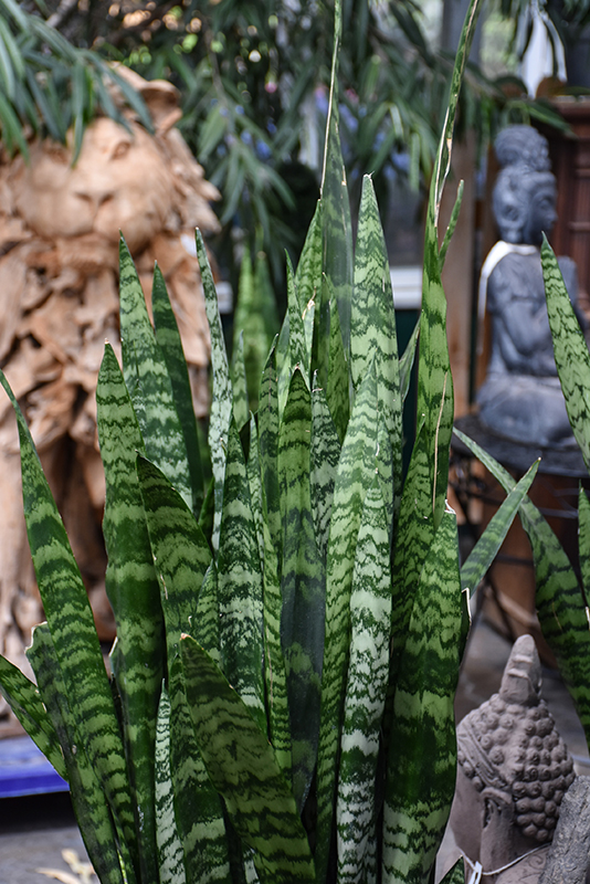 Hardiness Zone: 10a Other Names: Mother-In-Law's Tongue, Viper's Bowstring Hemp Description: This popular plant will form dense stands of vertical leaves, arranged in rosettes; produces green leaves with horizontal gray-green bands and vertical yellow margins; fragrant greenish-white flowers in spring, on mature plants, followed by orange berries Ornamental Features Striped Snake Plant features dainty fragrant light green spider-like flowers with white overtones along the stems in mid spring. Its attractive large twisted narrow leaves remain forest green in color with distinctive yellow edges and tinges of grayish green throughout the year. It features an abundance of magnificent orange berries in mid summer. Landscape Attributes Striped Snake Plant is an herbaceous evergreen tropical plant with an upright spreading habit of growth. Its medium texture blends into the garden, but can always be balanced by a couple of finer or coarser plants for an effective composition. This is a relatively low maintenance plant, and may require the occasional pruning to look its best. It has no significant negative characteristics. Striped Snake Plant is recommended for the following landscape applications; Planting & Growing This plant is native to the tropics and prefers growing in moist environments with evenly warm conditions all year round. In our climate, it is usually grown as an outdoor annual in the garden or in a container. If you want it to survive the winter, it can be brought in to the house and provided with special care, and then returned to the garden the following season. In its preferred tropical habitat, it can grow to be around 4 feet tall at maturity, with a spread of 18 inches. However, when grown as an annual or when overwintered indoors, it can be expected to perform differently, and its exact height and spread will depend on many factors; you may wish to consult with our experts as to how it might perform in your specific application and growing conditions. This plant does best in partial shade to shade. It is very adaptable to both dry and moist growing conditions, but will not tolerate any standing water. It is considered to be drought-tolerant, and thus makes an ideal choice for a low-water garden or xeriscape application. It is not particular as to soil pH, but grows best in sandy soils. It is highly tolerant of urban pollution and will even thrive in inner city environments. This is a selected variety of a species not originally from North America. It can be propagated by division; however, as a cultivated variety, be aware that it may be subject to certain restrictions or prohibitions on propagation. Striped Snake Plant is a fine choice for the garden, but it is also a good selection for planting in outdoor pots and containers. With its upright habit of growth, it is best suited for use as a 'thriller' in the 'spiller-thriller-filler' container combination; plant it near the center of the pot, surrounded by smaller plants and those that spill over the edges. It is even sizeable enough that it can be grown alone in a suitable container. Note that when growing plants in outdoor containers and baskets, they may require more frequent waterings than they would in the yard or garden. -- THIS IS A TROPICAL PLANT AND SHOULD NOT BE EXPECTED TO SURVIVE THE WINTER OUTDOORS IN OUR CLIMATE --![]()