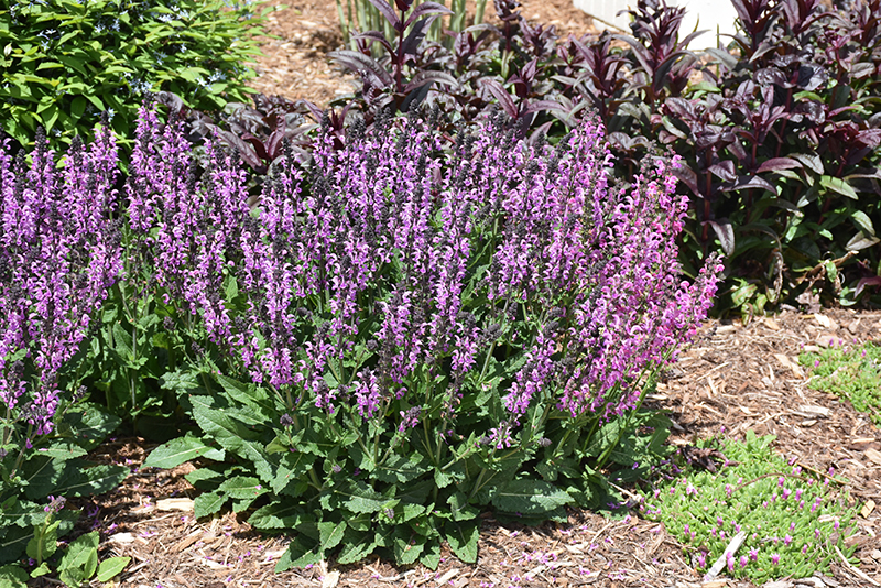 Hardiness Zone: 3a Other Names: Perennial Salvia, Meadow Clary, Meadow Sage Group/Class: Color Spires Series Brand: Proven Winners Description: Masses of intense fuchsia-violet blooms emerge on strong stems above neatly mounded, aromatic foliage; dense and well branched; a beautiful addition to borders or beds with its uniform habit; looks fantastic in containers Ornamental Features Salvia, Back to the Fuchsia has masses of beautiful spikes of fuchsia flowers with violet overtones rising above the foliage from late spring to early summer, which are most effective when planted in groupings. The flowers are excellent for cutting. Its attractive fragrant pointy leaves remain green in color throughout the season. Landscape Attributes Salvia, Back to the Fuchsia is an herbaceous perennial with an upright spreading habit of growth. Its relatively fine texture sets it apart from other garden plants with less refined foliage. This is a relatively low maintenance plant, and is best cleaned up in early spring before it resumes active growth for the season. It is a good choice for attracting bees, butterflies and hummingbirds to your yard, but is not particularly attractive to deer who tend to leave it alone in favor of tastier treats. It has no significant negative characteristics. Salvia, Back to the Fuchsia is recommended for the following landscape applications; Planting & Growing Salvia, Back to the Fuchsia will grow to be about 18 inches tall at maturity extending to 24 inches tall with the flowers, with a spread of 24 inches. When grown in masses or used as a bedding plant, individual plants should be spaced approximately 18 inches apart. It grows at a medium rate, and under ideal conditions can be expected to live for approximately 5 years. As an herbaceous perennial, this plant will usually die back to the crown each winter, and will regrow from the base each spring. Be careful not to disturb the crown in late winter when it may not be readily seen! This plant does best in full sun to partial shade. It prefers to grow in average to dry locations, and dislikes excessive moisture. To help this plant achive its best flowering performance, periodically apply a flower-boosting fertilizer from early spring through into the active growing season. It is not particular as to soil type or pH. It is somewhat tolerant of urban pollution. This particular variety is an interspecific hybrid. It can be propagated by division; however, as a cultivated variety, be aware that it may be subject to certain restrictions or prohibitions on propagation. Salvia, Back to the Fuchsia is a fine choice for the garden, but it is also a good selection for planting in outdoor pots and containers. With its upright habit of growth, it is best suited for use as a 'thriller' in the 'spiller-thriller-filler' container combination; plant it near the center of the pot, surrounded by smaller plants and those that spill over the edges. Note that when growing plants in outdoor containers and baskets, they may require more frequent waterings than they would in the yard or garden.![]()
