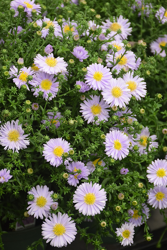Hardiness Zone: 4b Group/Class: Kickin Series Brand: Perennial Resource Description: Compact, with a full, bushy habit, featuring a profusion of lavender flowers from late summer to fall; prefers cool, moist soil; water the root zone instead of from the top to reduce fungal disease; great for containers or border fronts Ornamental Features Aster, Kickin Lavender has masses of beautiful semi-double lavender daisy flowers with yellow eyes at the ends of the stems from late summer to mid fall, which are most effective when planted in groupings. The flowers are excellent for cutting. Its narrow leaves remain dark green in color throughout the season. Landscape Attributes Aster, Kickin Lavender is a dense herbaceous perennial with a mounded form. Its relatively fine texture sets it apart from other garden plants with less refined foliage. This is a relatively low maintenance plant, and is best cleaned up in early spring before it resumes active growth for the season. It is a good choice for attracting butterflies to your yard, but is not particularly attractive to deer who tend to leave it alone in favor of tastier treats. Gardeners should be aware of the following characteristic(s) that may warrant special consideration; Aster, Kickin Lavender is recommended for the following landscape applications; Planting & Growing Aster, Kickin Lavender will grow to be about 30 inches tall at maturity, with a spread of 30 inches. Its foliage tends to remain dense right to the ground, not requiring facer plants in front. It grows at a medium rate, and under ideal conditions can be expected to live for approximately 8 years. As an herbaceous perennial, this plant will usually die back to the crown each winter, and will regrow from the base each spring. Be careful not to disturb the crown in late winter when it may not be readily seen! This plant does best in full sun to partial shade. It prefers to grow in average to moist conditions, and shouldn't be allowed to dry out. To help this plant achive its best flowering performance, periodically apply a flower-boosting fertilizer from early spring through into the active growing season. It is not particular as to soil pH, but grows best in rich soils, and is able to handle environmental salt. It is somewhat tolerant of urban pollution. This particular variety is an interspecific hybrid. It can be propagated by division; however, as a cultivated variety, be aware that it may be subject to certain restrictions or prohibitions on propagation. Aster, Kickin Lavender is a fine choice for the garden, but it is also a good selection for planting in outdoor pots and containers. It can be used either as 'filler' or as a 'thriller' in the 'spiller-thriller-filler' container combination, depending on the height and form of the other plants used in the container planting. It is even sizeable enough that it can be grown alone in a suitable container. Note that when growing plants in outdoor containers and baskets, they may require more frequent waterings than they would in the yard or garden.![]()