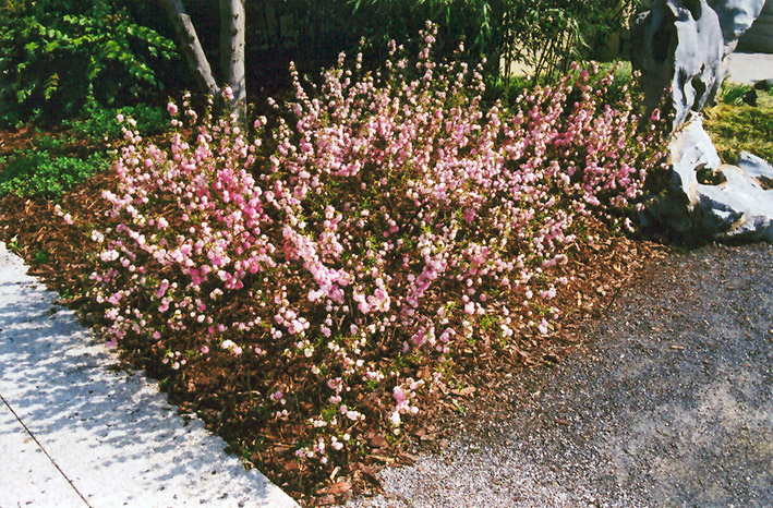 Hardiness Zone: 4a Other Names: Dwarf Flowering Almond Description: An open, upright shrub smothered in frothy double pink flowers in early spring, redeces to the background the rest of the year, so use in conjunction with other plants for best effect; needs full sun and well-drained soil, most effective in mass plantings Ornamental Features Almond, Double Pink Flowering is draped in stunning clusters of fragrant pink flowers along the branches in mid spring before the leaves. It has green deciduous foliage. The narrow leaves turn yellow in fall. Landscape Attributes Almond, Double Pink Flowering is a multi-stemmed deciduous shrub with an upright spreading habit of growth. Its average texture blends into the landscape, but can be balanced by one or two finer or coarser trees or shrubs for an effective composition. This shrub will require occasional maintenance and upkeep, and should only be pruned after flowering to avoid removing any of the current season's flowers. It has no significant negative characteristics. Almond, Double Pink Flowering is recommended for the following landscape applications; Planting & Growing Almond, Double Pink Flowering will grow to be about 6 feet tall at maturity, with a spread of 4 feet. It tends to be a little leggy, with a typical clearance of 1 foot from the ground, and is suitable for planting under power lines. It grows at a medium rate, and under ideal conditions can be expected to live for approximately 20 years. This shrub does best in full sun to partial shade. It does best in average to evenly moist conditions, but will not tolerate standing water. To help this plant achive its best flowering performance, periodically apply a flower-boosting fertilizer from early spring through into the active growing season. It is not particular as to soil type or pH. It is highly tolerant of urban pollution and will even thrive in inner city environments. This is a selected variety of a species not originally from North America.![]()