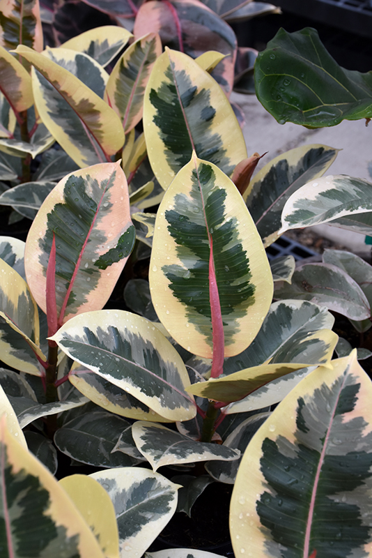 Other Names: Rubber Tree, Rubber Fig Group/Class: Leafjoy Houseplants Brand: Proven Winners Description: A gorgeous indoor accent plant. producing glossy leaves in shades of green, with yellowish-cream variegation, and touches of pink; prune to promote branching; position in bright areas away from drafts Features & Attributes Chroma™ Tineke Rubber Plant's attractive large glossy oval leaves emerge chartreuse, turning green in color with showy buttery yellow variegation and tinges of pink throughout the year on a plant with an upright spreading habit of growth. This is a multi-stemmed evergreen houseplant with an upright spreading habit of growth. Its relatively coarse texture stands it apart from other indoor plants with finer foliage. This plant can be pruned at any time to keep it looking its best. Planting & Growing When grown indoors, Chroma™ Tineke Rubber Plant can be expected to grow to be about 8 feet tall at maturity, with a spread of 4 feet. It grows at a medium rate, and under ideal conditions can be expected to live for approximately 50 years. This houseplant will do well in a location that gets either direct or indirect sunlight, although it will usually require a more brightly-lit environment than what artificial indoor lighting alone can provide. It does best in average to evenly moist soil, but will not tolerate standing water. The surface of the soil shouldn't be allowed to dry out completely, and so you should expect to water this plant once and possibly even twice each week. Be aware that your particular watering schedule may vary depending on its location in the room, the pot size, plant size and other conditions; if in doubt, ask one of our experts in the store for advice. It will benefit from a regular feeding with a general-purpose fertilizer with every second or third watering. It is not particular as to soil pH, but grows best in rich soil. Contact the store for specific recommendations on pre-mixed potting soil for this plant. Be warned that parts of this plant are known to be toxic to humans and animals, so special care should be exercised if growing it around children and pets. There are many factors that will affect the ultimate height, spread and overall performance of a plant when grown indoors; among them, the size of the pot it's growing in, the amount of light it receives, watering frequency, the pruning regimen and repotting schedule. Use the information described here as a guideline only; individual performance can and will vary. Please contact the store to speak with one of our experts if you are interested in further details concerning recommendations on pot size, watering, pruning, repotting, etc. -- THIS IS A HOUSEPLANT AND IS NOT MEANT TO SURVIVE THE WINTER OUTDOORS IN OUR CLIMATE --![]()
