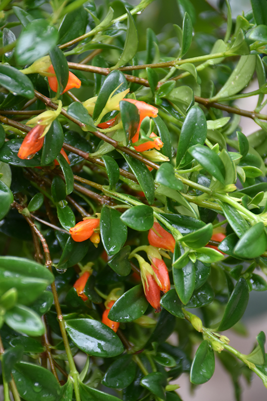 Other Names: Guppy Plant, form. Hypocyrta radicans Description: This relative of the common African violet is a stunning plant to behold; shiny, dark green leaves contrast unusual deep orange blooms that resemble small goldfish; an outstanding, easy care indoor accent plant; becomes shrub-like over time Features & Attributes Goldfish Plant features unusual orange tubular flowers along the stems from early winter to late fall. Its attractive glossy oval leaves emerge light green, turning dark green in color throughout the year. This is a dense herbaceous evergreen houseplant with a trailing habit of growth, eventually spilling over the edges of hanging baskets and containers. This plant can be pruned at any time to keep it looking its best. Planting & Growing When grown indoors, Goldfish Plant can be expected to grow to be about 3 feet tall at maturity, with a spread of 3 feet. It grows at a slow rate, and under ideal conditions can be expected to live for approximately 10 years. This houseplant will do well in a location that gets either direct or indirect sunlight, although it will usually require a more brightly-lit environment than what artificial indoor lighting alone can provide. It does best in average to evenly moist soil, but will not tolerate standing water. The surface of the soil shouldn't be allowed to dry out completely, and so you should expect to water this plant once and possibly even twice each week. Be aware that your particular watering schedule may vary depending on its location in the room, the pot size, plant size and other conditions; if in doubt, ask one of our experts in the store for advice. It will benefit from a regular feeding with a general-purpose fertilizer with every second or third watering. It is not particular as to soil pH, but grows best in rich soil. Contact the store for specific recommendations on pre-mixed potting soil for this plant. There are many factors that will affect the ultimate height, spread and overall performance of a plant when grown indoors; among them, the size of the pot it's growing in, the amount of light it receives, watering frequency, the pruning regimen and repotting schedule. Use the information described here as a guideline only; individual performance can and will vary. Please contact the store to speak with one of our experts if you are interested in further details concerning recommendations on pot size, watering, pruning, repotting, etc. -- THIS IS A HOUSEPLANT AND IS NOT MEANT TO SURVIVE THE WINTER OUTDOORS IN OUR CLIMATE --