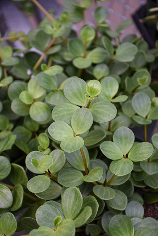 Other Names: syn. Peperomia tetraphylla Description: This stunning plant features small, dark green, coin shaped leaves with light green veining; brown and green flower spikes are not showy and may be trimmed away to promote leaf growth; medium to bright light, but no direct sun Features & Attributes Hope Peperomia's attractive small glossy round leaves emerge chartreuse, turning dark green in color with distinctive light green veins throughout the year on a plant with a trailing habit of growth. The coral-pink stems can be quite attractive and add to the plant's interest. This is an herbaceous evergreen houseplant with a trailing habit of growth, eventually spilling over the edges of hanging baskets and containers. This plant may benefit from an occasional pruning to look its best. Planting & Growing When grown indoors, Hope Peperomia can be expected to grow to be about 12 inches tall at maturity, with a spread of 24 inches. It grows at a slow rate, and under ideal conditions can be expected to live for approximately 5 years. This houseplant should only be grown away from direct sunlight or in a room with strong artificial light. It does best in average to evenly moist soil, but will not tolerate standing water. The surface of the soil shouldn't be allowed to dry out completely, and so you should expect to water this plant once and possibly even twice each week. Be aware that your particular watering schedule may vary depending on its location in the room, the pot size, plant size and other conditions; if in doubt, ask one of our experts in the store for advice. It will benefit from a regular feeding with a general-purpose fertilizer with every second or third watering. It is not particular as to soil type, but has a definite preference for acidic soil. Contact the store for specific recommendations on pre-mixed potting soil for this plant. There are many factors that will affect the ultimate height, spread and overall performance of a plant when grown indoors; among them, the size of the pot it's growing in, the amount of light it receives, watering frequency, the pruning regimen and repotting schedule. Use the information described here as a guideline only; individual performance can and will vary. Please contact the store to speak with one of our experts if you are interested in further details concerning recommendations on pot size, watering, pruning, repotting, etc. -- THIS IS A HOUSEPLANT AND IS NOT MEANT TO SURVIVE THE WINTER OUTDOORS IN OUR CLIMATE --