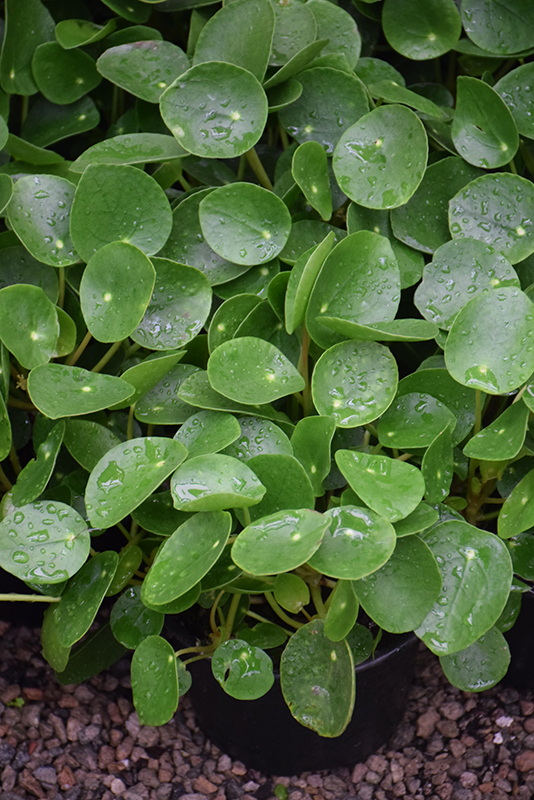 Other Names: Coin Plant, UFO Plant, Pancake Plant Description: Attractive, interesting, coin shaped leaves are nearly round, featuring smooth green surfaces with a white spot on each leaf; requires bright indirect light; an excellent tabletop accent for a bright indoor area; great for terrariums Features & Attributes Chinese Money Plant's attractive glossy round leaves remain forest green in color with distinctive white spots throughout the year on a plant with a mounded habit of growth. This is a dense herbaceous evergreen houseplant with a mounded form. Its relatively fine texture sets it apart from other indoor plants with less refined foliage. This plant can be pruned at any time to keep it looking its best. Planting & Growing When grown indoors, Chinese Money Plant can be expected to grow to be about 10 inches tall at maturity, with a spread of 10 inches. It grows at a medium rate, and under ideal conditions can be expected to live for approximately 5 years. This houseplant should only be grown away from direct sunlight or in a room with strong artificial light. It does best in average to evenly moist soil, but will not tolerate standing water. The surface of the soil shouldn't be allowed to dry out completely, and so you should expect to water this plant once and possibly even twice each week. Be aware that your particular watering schedule may vary depending on its location in the room, the pot size, plant size and other conditions; if in doubt, ask one of our experts in the store for advice. It will benefit from a regular feeding with a general-purpose fertilizer with every second or third watering. It is not particular as to soil pH, but grows best in rich soil. Contact the store for specific recommendations on pre-mixed potting soil for this plant. There are many factors that will affect the ultimate height, spread and overall performance of a plant when grown indoors; among them, the size of the pot it's growing in, the amount of light it receives, watering frequency, the pruning regimen and repotting schedule. Use the information described here as a guideline only; individual performance can and will vary. Please contact the store to speak with one of our experts if you are interested in further details concerning recommendations on pot size, watering, pruning, repotting, etc. -- THIS IS A HOUSEPLANT AND IS NOT MEANT TO SURVIVE THE WINTER OUTDOORS IN OUR CLIMATE --