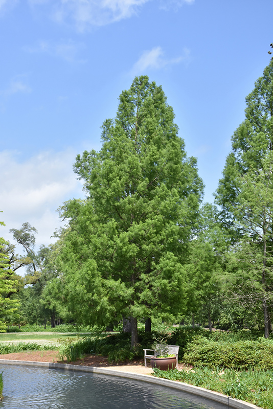 Hardiness Zone: 4a Description: An interesting tall, pyramidal deciduous conifer characteristic of the South but actually quite hardy; narrow bright green leaves turn golden brown in fall, a broad trunk and odd knee-like protrusions at the base when grown in standing water. Ornamental Features Bald Cypress is primarily valued in the landscape for its distinctively pyramidal habit of growth. It has emerald green deciduous foliage. The ferny bipinnately compound leaves turn an outstanding orange in the fall. However, the fruit can be messy in the landscape and may require occasional clean-up. The shaggy antique red bark adds an interesting dimension to the landscape. Landscape Attributes Bald Cypress is a deciduous tree with a strong central leader and a distinctive and refined pyramidal form. It lends an extremely fine and delicate texture to the landscape composition which can make it a great accent feature on this basis alone. This is a relatively low maintenance tree, and is best pruned in late winter once the threat of extreme cold has passed. It is a good choice for attracting birds and squirrels to your yard, but is not particularly attractive to deer who tend to leave it alone in favor of tastier treats. It has no significant negative characteristics. Bald Cypress is recommended for the following landscape applications; Planting & Growing Bald Cypress will grow to be about 70 feet tall at maturity, with a spread of 40 feet. It has a high canopy of foliage that sits well above the ground, and should not be planted underneath power lines. As it matures, the lower branches of this tree can be strategically removed to create a high enough canopy to support unobstructed human traffic underneath. It grows at a medium rate, and under ideal conditions can be expected to live for 80 years or more. This tree does best in full sun to partial shade. It is an amazingly adaptable plant, tolerating both dry conditions and even some standing water. This plant should be periodically fertilized throughout the active growing season with a specially-formulated acidic fertilizer. It is not particular as to soil type or pH. It is somewhat tolerant of urban pollution. This species is native to parts of North America. Special Attributes Flowers are insignificant. Few to some clusters of 2" round cones appear in summer when the tree gets 8 to 10 years or older and drops in early autumn.