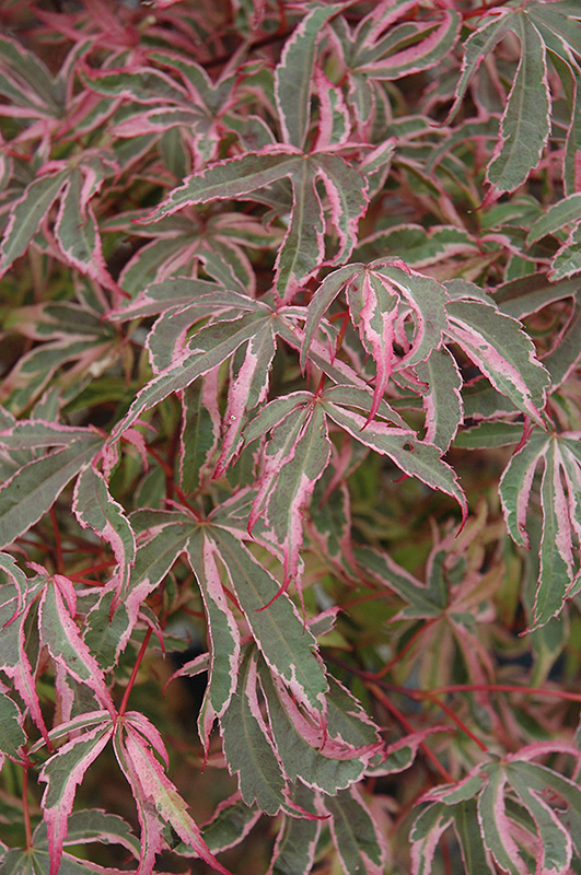 Hardiness Zone: 5a Description: The dazzling leaves of this hot new introduction emerge with pink, then turn green with cream and pink variegation during summer, color is always dynamic and vibrant on this exciting upright specimen tree Ornamental Features Japanese Maple, Shirazz is primarily valued in the landscape for its cascading habit of growth. It has attractive creamy white-variegated green foliage with hints of pink which emerges cherry red in spring. The small lobed palmate leaves are highly ornamental and turn outstanding shades of orange and in the fall. Landscape Attributes Japanese Maple, Shirazz is a dense deciduous tree with a shapely form and gracefully arching branches. Its relatively fine texture sets it apart from other landscape plants with less refined foliage. This is a relatively low maintenance tree, and should only be pruned in summer after the leaves have fully developed, as it may 'bleed' sap if pruned in late winter or early spring. It has no significant negative characteristics. Japanese Maple, Shirazz is recommended for the following landscape applications; Planting & Growing Japanese Maple, Shirazz will grow to be about 15 feet tall at maturity, with a spread of 18 feet. It has a low canopy with a typical clearance of 2 feet from the ground, and is suitable for planting under power lines. It grows at a slow rate, and under ideal conditions can be expected to live for 60 years or more. This tree does best in partial shade to shade. It prefers to grow in average to moist conditions, and shouldn't be allowed to dry out. This plant should be periodically fertilized throughout the active growing season with a specially-formulated acidic fertilizer. It is not particular as to soil pH, but grows best in rich soils. It is somewhat tolerant of urban pollution, and will benefit from being planted in a relatively sheltered location. Consider applying a thick mulch around the root zone in winter to protect it in exposed locations or colder microclimates. This is a selected variety of a species not originally from North America.![]()