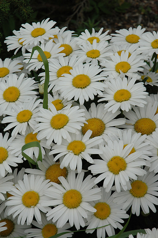 This pretty variety is smallish, only growing 10 to 12 inchs; beautiful snow white blooms with yellow centers greet you along walkways and border plantings; cherished for its compact stature compared to other varieties