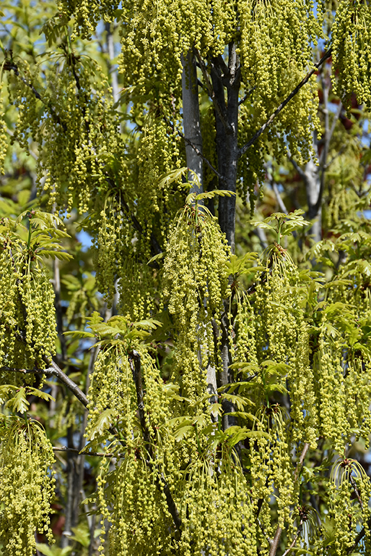 Hardiness Zone: 4b Description: An extremely beautiful tall tree with a narrowly columnar habit of growth and deep red fall color, ideal for formal screening in the home landscape, extremely tough and adaptable, faster growing than other oaks Ornamental Features Oak, Crimson Spire is primarily valued in the landscape for its rigidly columnar form. It has dark green deciduous foliage. The lobed leaves turn an outstanding brick red in the fall. However, the fruit can be messy in the landscape and may require occasional clean-up. Landscape Attributes Oak, Crimson Spire is a dense deciduous tree with a strong central leader and a narrowly upright and columnar growth habit. Its average texture blends into the landscape, but can be balanced by one or two finer or coarser trees or shrubs for an effective composition. This tree will require occasional maintenance and upkeep, and is best pruned in late winter once the threat of extreme cold has passed. It is a good choice for attracting birds and squirrels to your yard. It has no significant negative characteristics. Oak, Crimson Spire is recommended for the following landscape applications; Planting & Growing Oak, Crimson Spire will grow to be about 45 feet tall at maturity, with a spread of 15 feet. It has a low canopy with a typical clearance of 6 feet from the ground, and should not be planted underneath power lines. As it matures, the lower branches of this tree can be strategically removed to create a high enough canopy to support unobstructed human traffic underneath. It grows at a medium rate, and under ideal conditions can be expected to live to a ripe old age of 100 years or more; think of this as a heritage tree for future generations! This tree should only be grown in full sunlight. It prefers to grow in average to moist conditions, and shouldn't be allowed to dry out. This plant should be periodically fertilized throughout the active growing season with a specially-formulated acidic fertilizer. It is not particular as to soil type, but has a definite preference for acidic soils. It is highly tolerant of urban pollution and will even thrive in inner city environments. This particular variety is an interspecific hybrid, and parts of it are known to be toxic to humans and animals, so care should be exercised in planting it around children and pets. Special Attributes This is a cross between White Oak and Red Oak.It starts producing acorns between 20 and 25 years of age.The acorns are 1-1 1/4 inch and can take 1 to 2 years to mature.The leaves can stay on the tree well into winter.