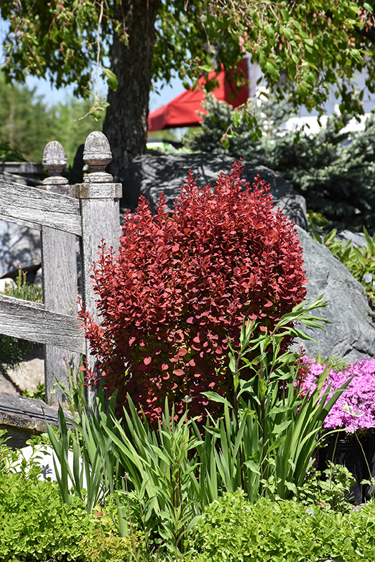 Hardiness Zone: 4b Description: A beautiful shrub for bringing color into the landscape; rich scarlet red foliage fades to a soft orange-red all season long, finally turning to brilliant crimson red in fall, also has attractive flowers and showy red fruits after the leaves fall Ornamental Features Barberry (Japanese), Orange Rocket is primarily grown for its highly ornamental fruit. The fruits are showy crimson drupes carried in abundance from early to late fall. It has attractive salmon deciduous foliage which emerges red in spring. The small oval leaves are highly ornamental and turn an outstanding ruby-red in the fall. It features tiny clusters of buttery yellow flowers hanging below the branches in mid spring. Landscape Attributes Barberry (Japanese), Orange Rocket is a dense multi-stemmed deciduous shrub with a more or less rounded form. Its relatively fine texture sets it apart from other landscape plants with less refined foliage. This is a relatively low maintenance shrub, and can be pruned at anytime. Deer don't particularly care for this plant and will usually leave it alone in favor of tastier treats. Gardeners should be aware of the following characteristic(s) that may warrant special consideration; Barberry (Japanese), Orange Rocket is recommended for the following landscape applications; Planting & Growing Barberry (Japanese), Orange Rocket will grow to be about 5 feet tall at maturity, with a spread of 3 feet. It tends to fill out right to the ground and therefore doesn't necessarily require facer plants in front, and is suitable for planting under power lines. It grows at a fast rate, and under ideal conditions can be expected to live for approximately 20 years. This shrub does best in full sun to partial shade. It does best in average to evenly moist conditions, but will not tolerate standing water. This plant should be periodically fertilized throughout the active growing season with a specially-formulated acidic fertilizer. It is not particular as to soil type or pH, and is able to handle environmental salt. It is highly tolerant of urban pollution and will even thrive in inner city environments. This is a selected variety of a species not originally from North America.![]()