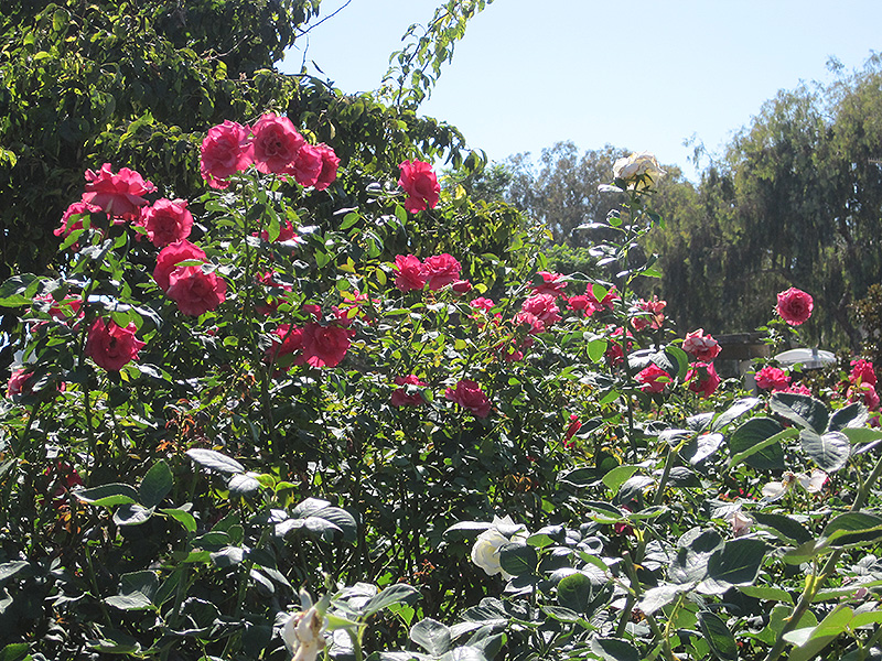 Hardiness Zone: 6b Other Names: Fame Rose Group/Class: Grandiflora Rose Description: The brightness of the perfectly shaped flowers attracts the eye with its dazzling hot pink blooms above the deep green foliage; perfect for cutting, this variety is mildly fragrant, with excellent disease resistance Ornamental Features Rose (Hybrid Tea), Fame! features showy lightly-scented double hot pink flowers at the ends of the branches from early summer to mid fall. The flowers are excellent for cutting. It has dark green deciduous foliage. The glossy oval compound leaves do not develop any appreciable fall color. Landscape Attributes Rose (Hybrid Tea), Fame! is a multi-stemmed deciduous shrub with an upright spreading habit of growth. Its average texture blends into the landscape, but can be balanced by one or two finer or coarser trees or shrubs for an effective composition. This shrub will require occasional maintenance and upkeep, and is best pruned in late winter once the threat of extreme cold has passed. It is a good choice for attracting bees to your yard. It has no significant negative characteristics. Rose (Hybrid Tea), Fame! is recommended for the following landscape applications; Planting & Growing Rose (Hybrid Tea), Fame! will grow to be about 5 feet tall at maturity, with a spread of 4 feet. It tends to fill out right to the ground and therefore doesn't necessarily require facer plants in front, and is suitable for planting under power lines. It grows at a fast rate, and under ideal conditions can be expected to live for approximately 30 years. This shrub should only be grown in full sunlight. It does best in average to evenly moist conditions, but will not tolerate standing water. It is not particular as to soil type or pH. It is highly tolerant of urban pollution and will even thrive in inner city environments. This particular variety is an interspecific hybrid.